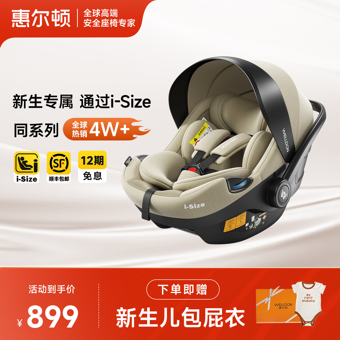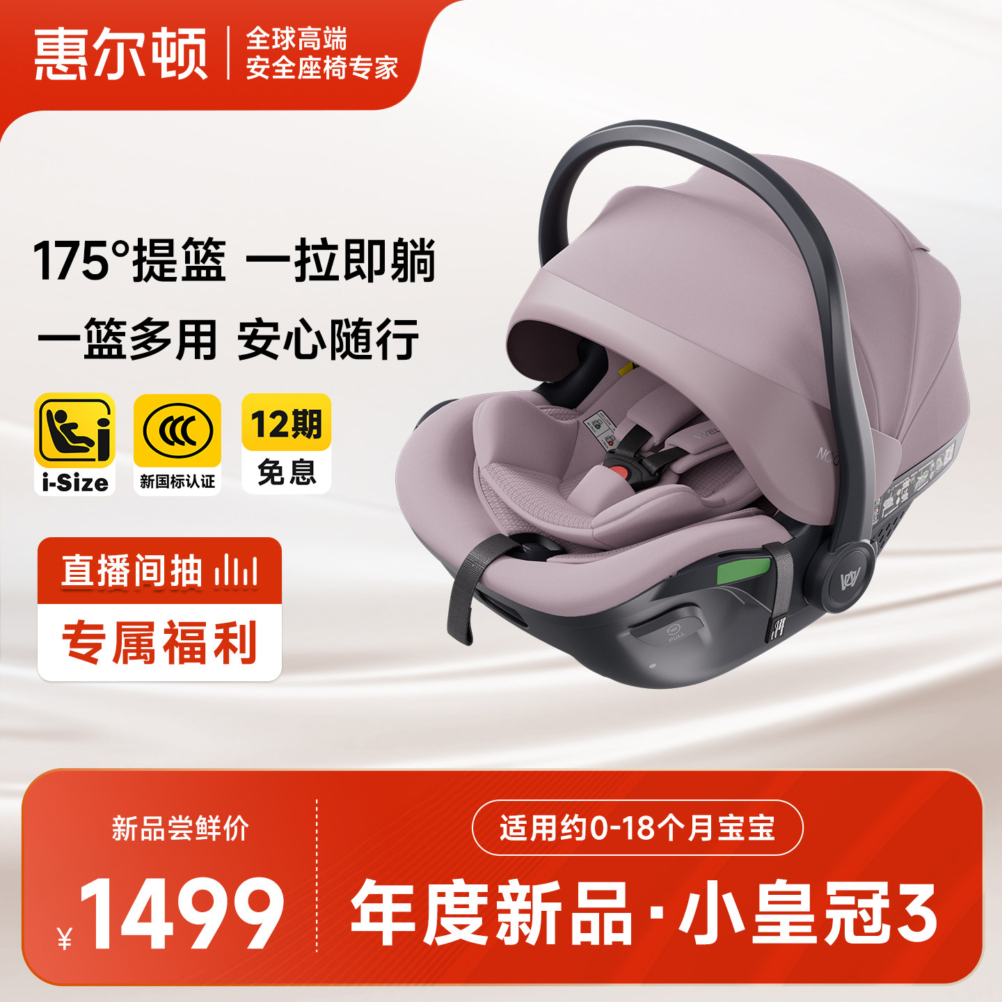 welldon惠尔顿小皇冠3便携式儿童安全座椅0-18个月宝宝婴儿提篮