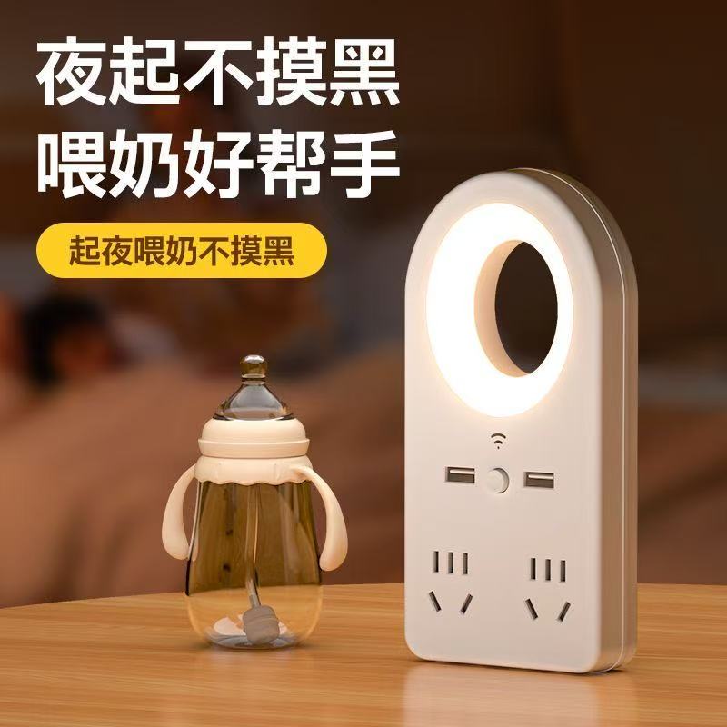 智能语音小夜灯插座带USB快充接口转换器多功能家用卧室睡眠灯