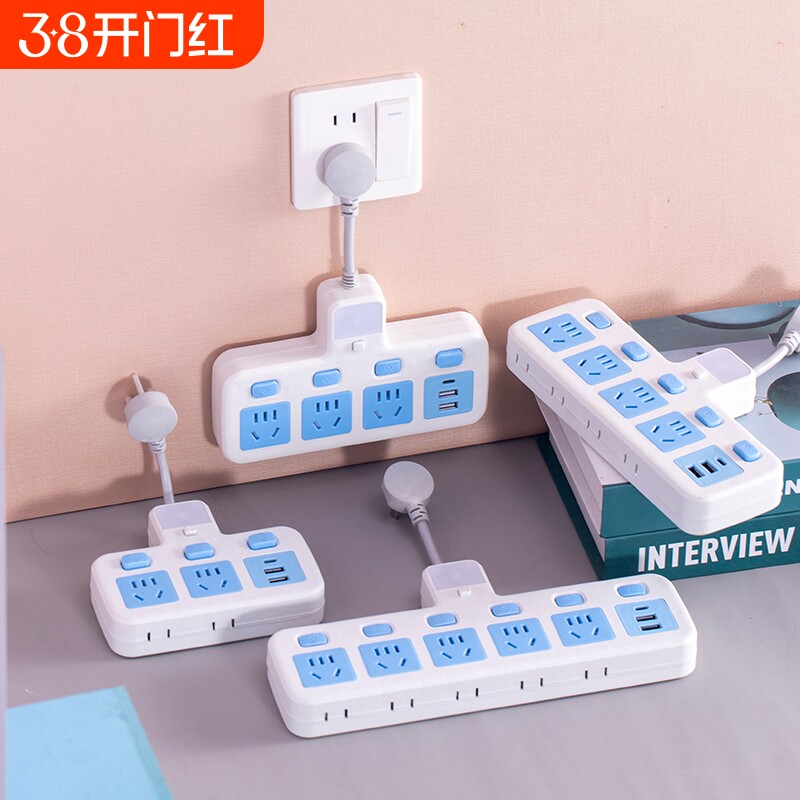 家用短线智能一转多转换器多功能插座夜灯usb办公转换插头接线板