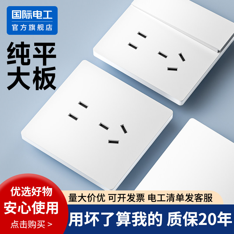国际电工开关插座面板86型家用墙壁暗装一开五孔16a三孔空调白色