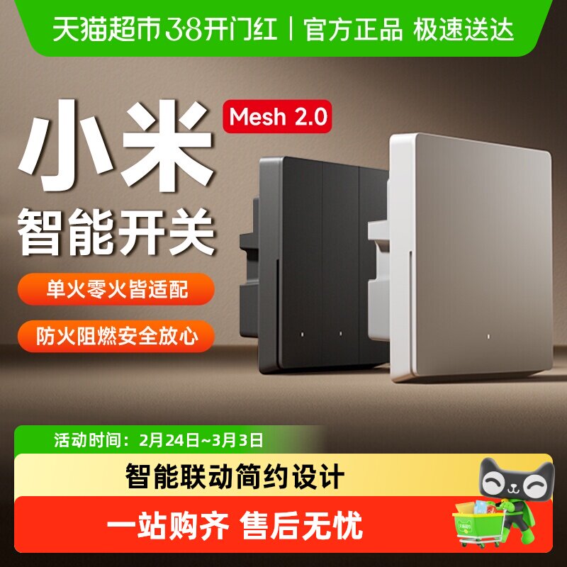 小米米家智能开关Mesh2.0升级家用墙壁开关远程控制插座面板