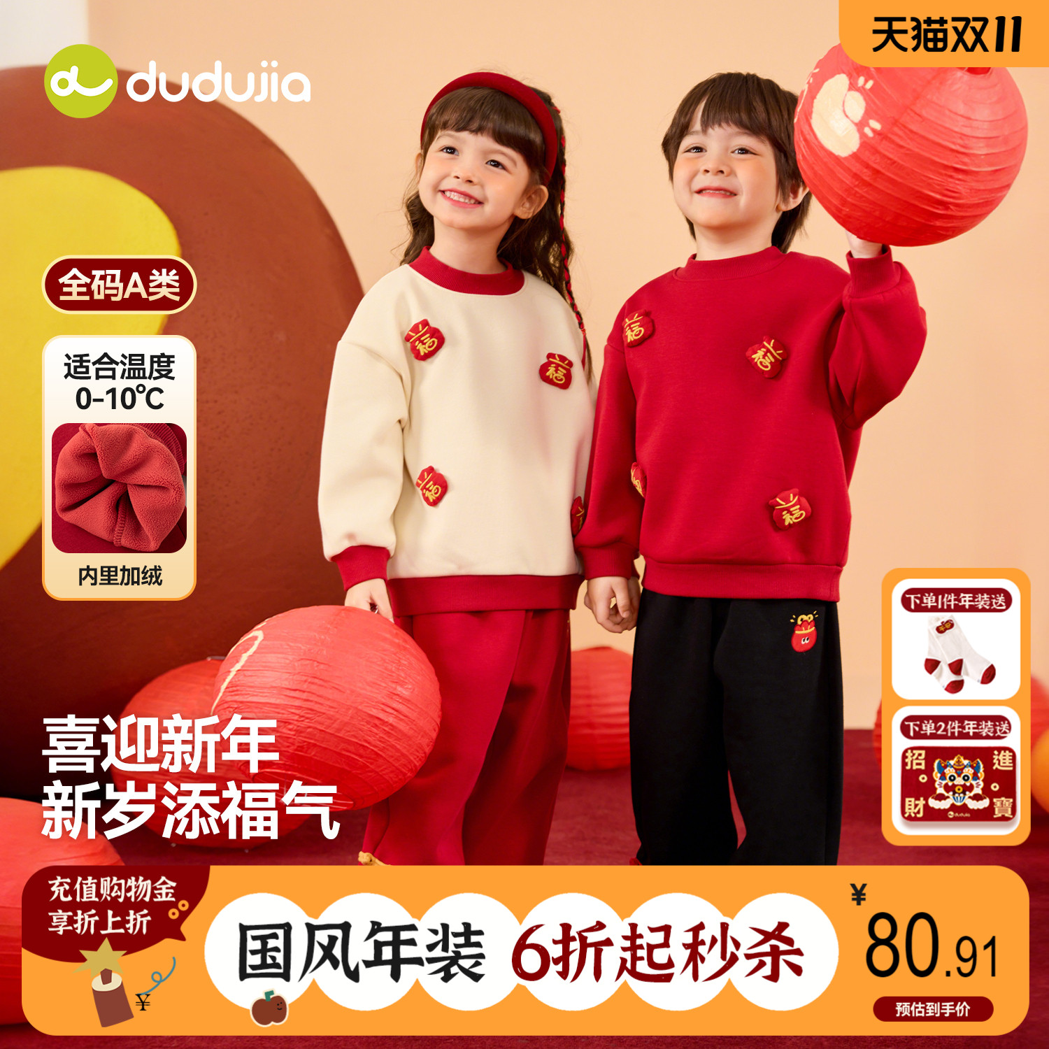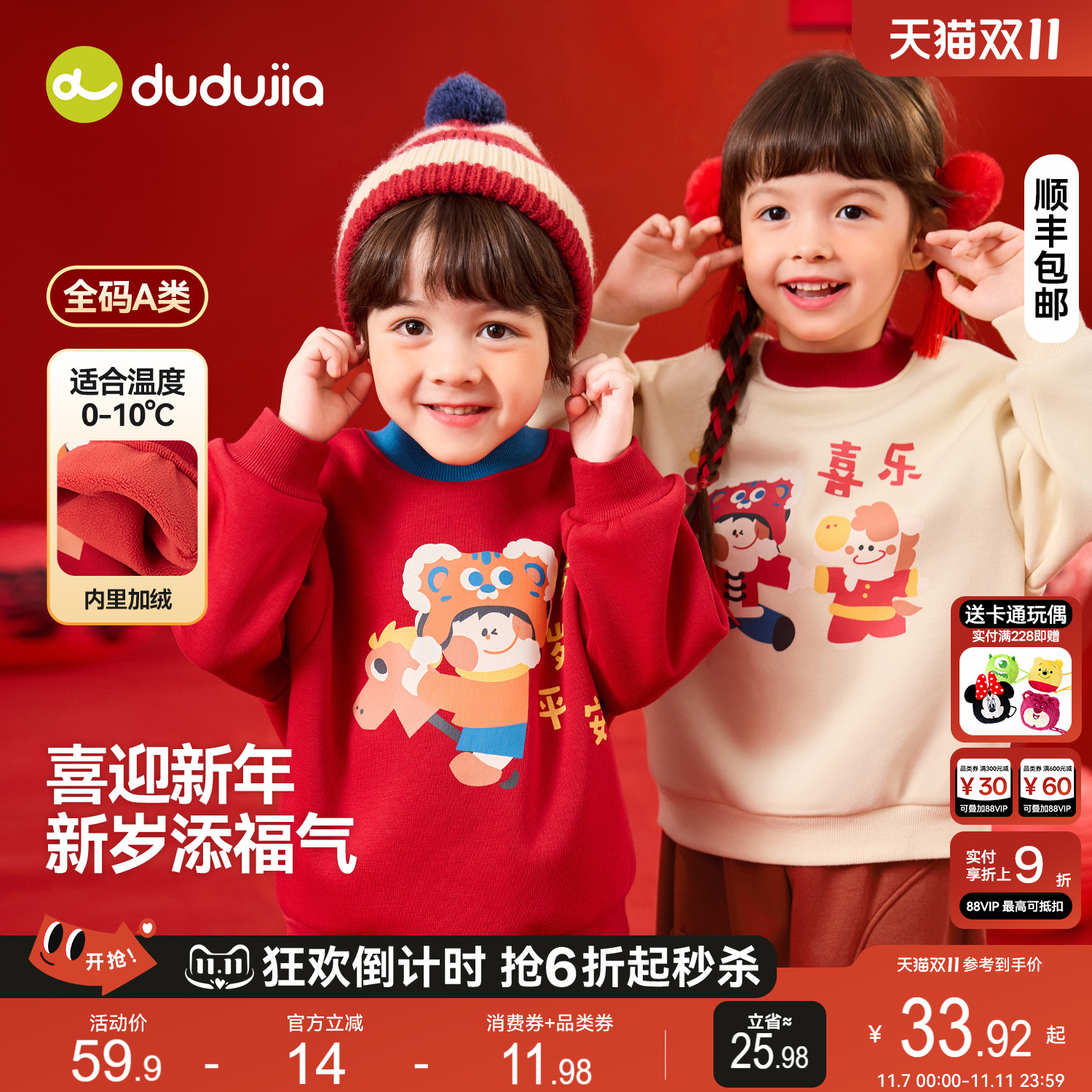 嘟嘟家儿童拜年服卫衣加绒加厚宝宝唐装喜庆男童冬装上衣女童年装
