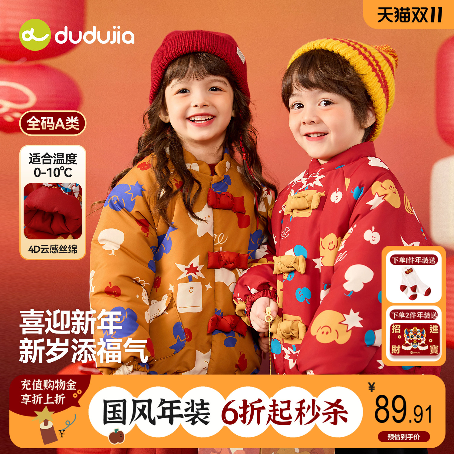 嘟嘟家儿童棉服冬季宝宝唐装喜庆男童拜年服冬装上衣女童年装棉袄