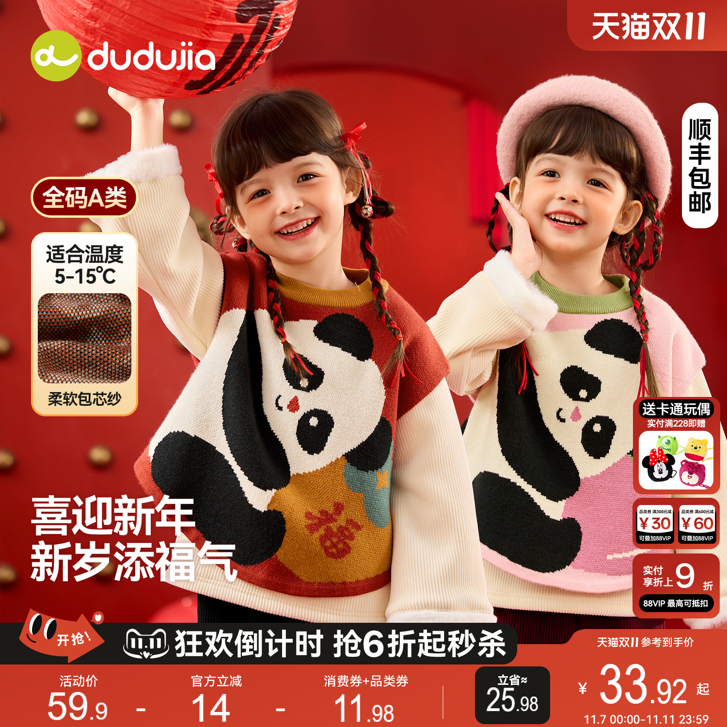 嘟嘟家宝宝唐装马甲冬季儿童针织上衣喜庆男童拜年服坎肩女童年装