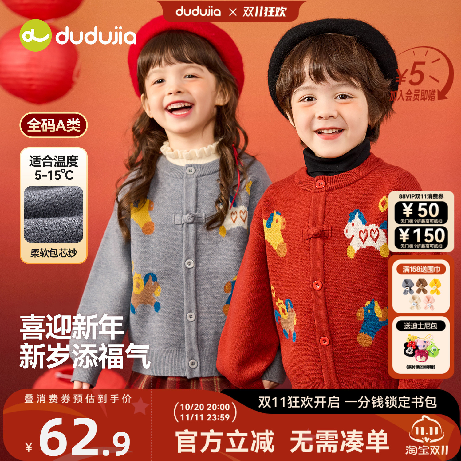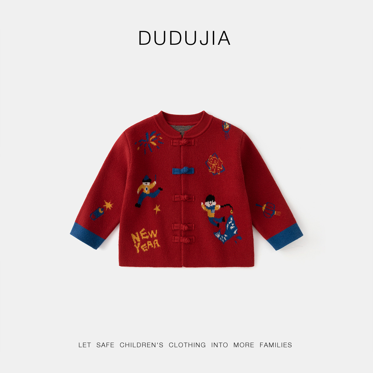 嘟嘟家儿童新中式毛衣男童拜年服女童针织衫冬季红色宝宝唐装新年
