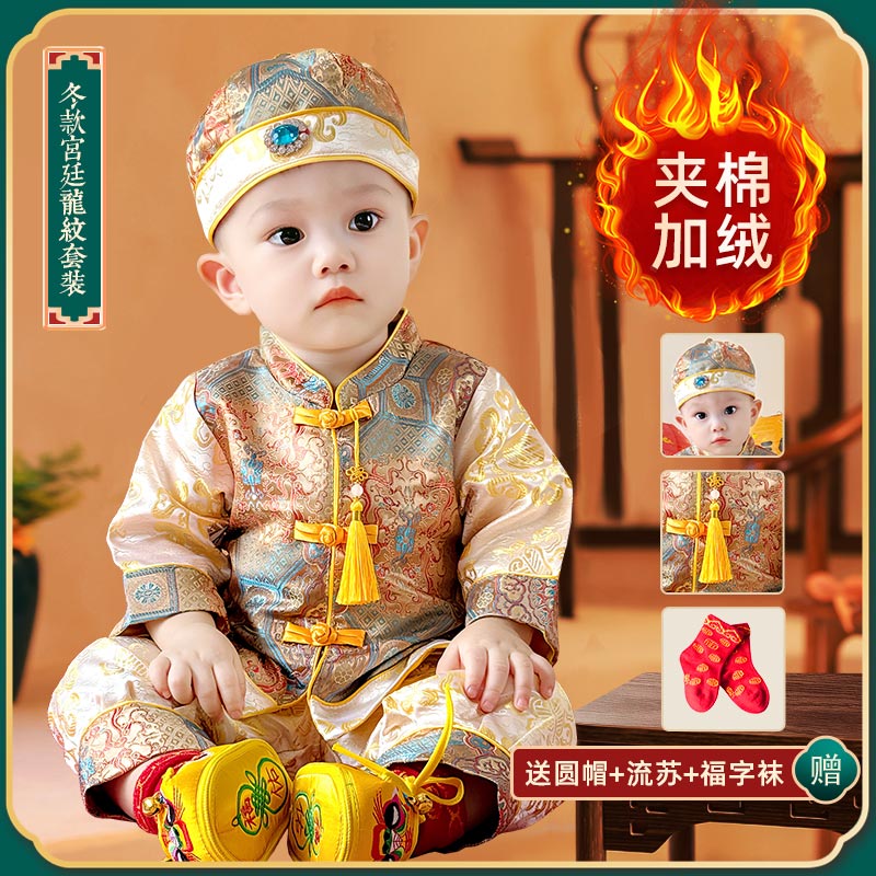 宝宝抓周礼服唐装男宝秋冬季套装周岁服女宝新中式婴儿百天宴衣服