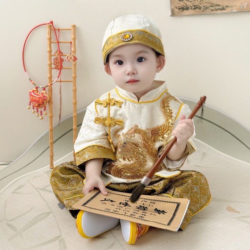 春秋周岁礼服中式男女抓周宴服宝宝唐装中国风生日礼服抓周宴套装