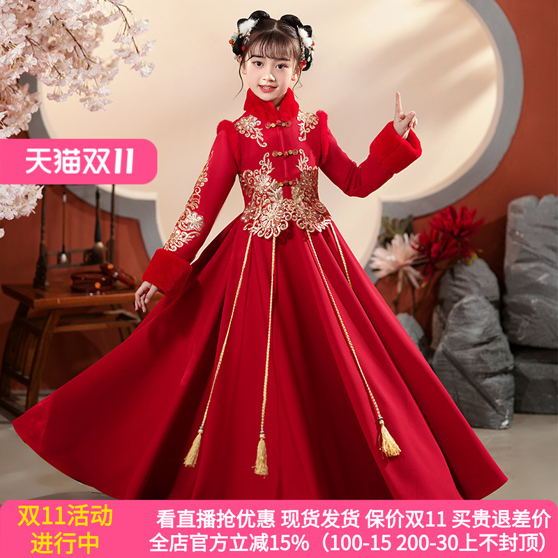 女童汉服冬装中国风加绒儿童旗袍裙加厚新中式超仙宝宝唐装拜年服