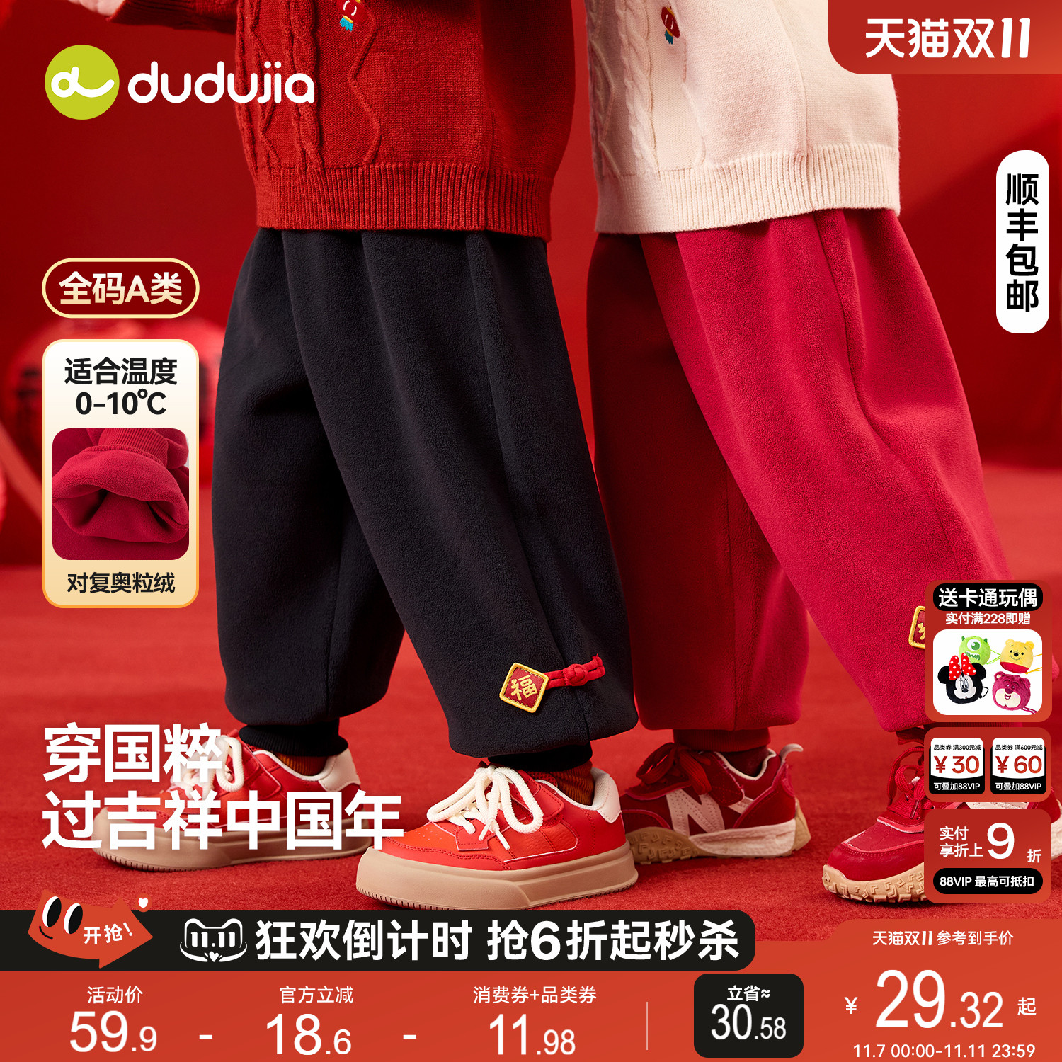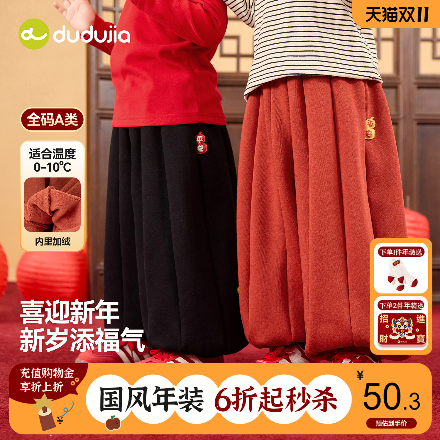 嘟嘟家宝宝唐装裤子冬季儿童拜年服加绒加厚男童年装喜庆女童长裤