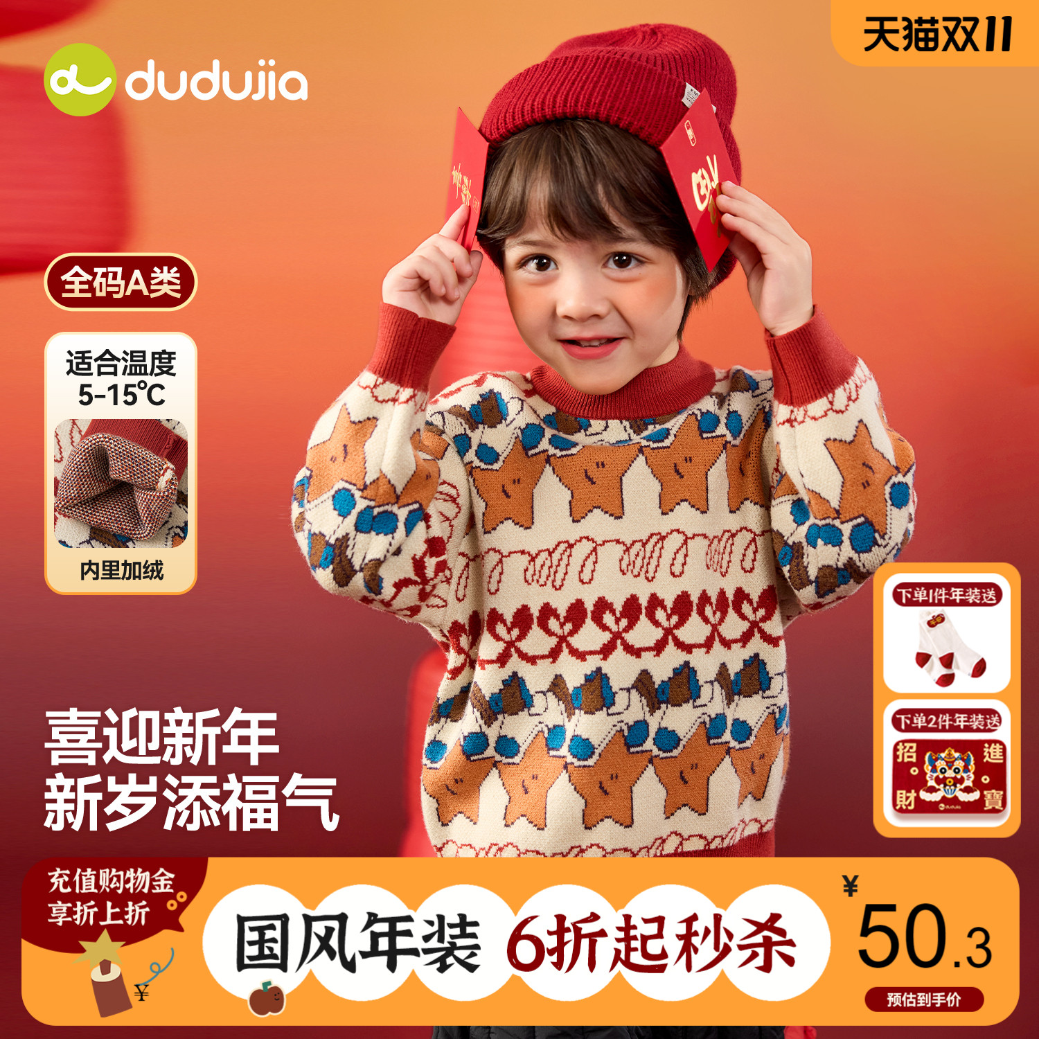 嘟嘟家儿童拜年服宝宝唐装冬季男童毛衣女童周岁礼服国风男宝上衣