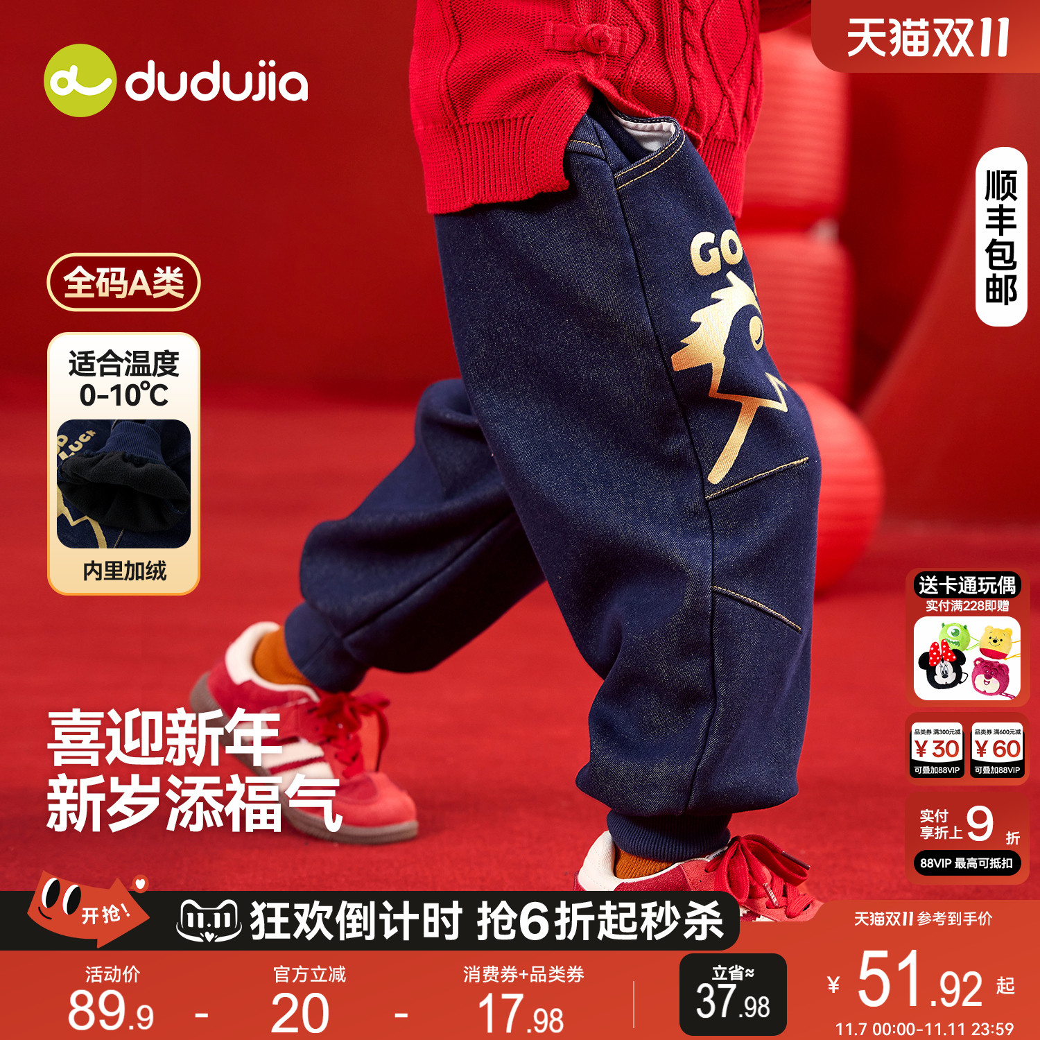 【防褪色】嘟嘟家宝宝唐装裤子冬季儿童牛仔裤加绒男童拜年服长裤