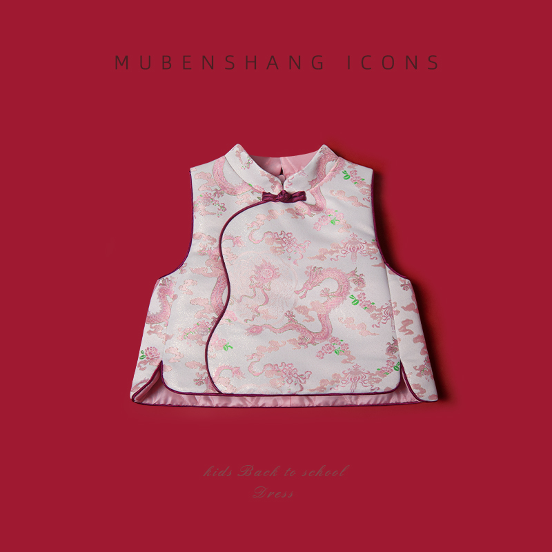 木本尚女童汉服马甲2025新款宝宝唐装拜年服夹棉款中国风提花旗袍