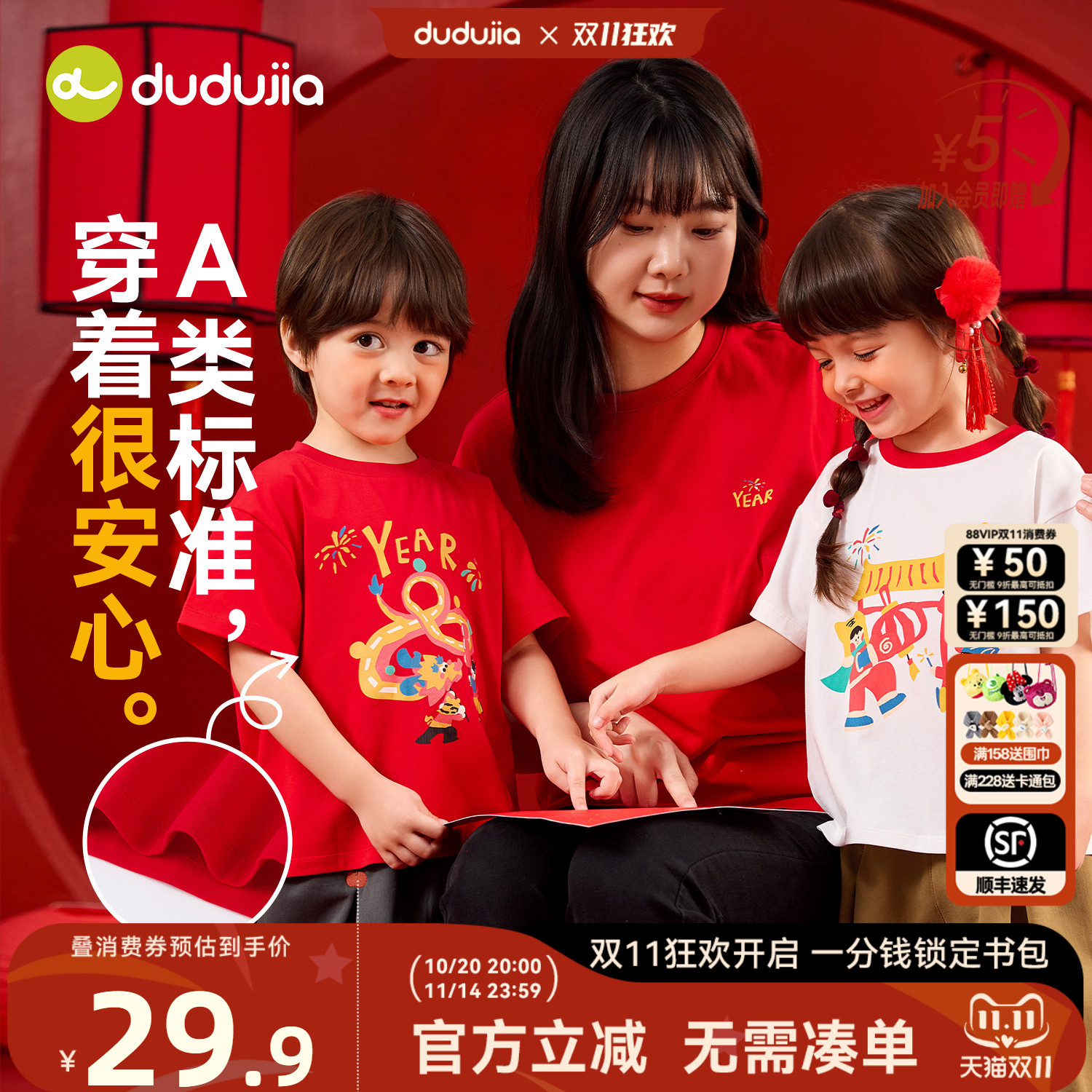 [亲子装]dudujia儿童拜年服国风男童短袖t女童年衣宝宝唐装男宝T