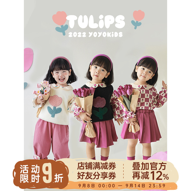 幼悠女童单面绣花毛衣秋冬儿童时尚可爱罗纹收边防风锁暖插肩上衣