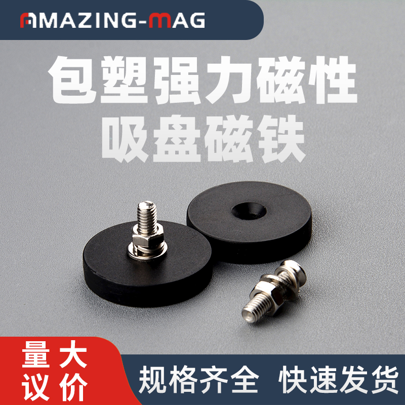 防碎防水防锈耐腐蚀户外包塑强磁铁磁锅 m3沉孔螺杆永磁吸盘底座