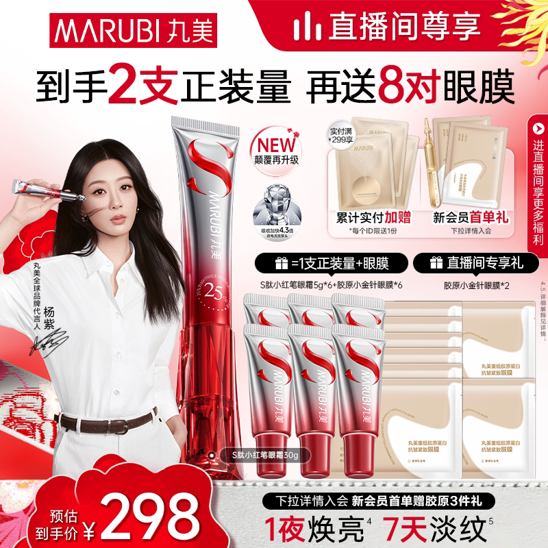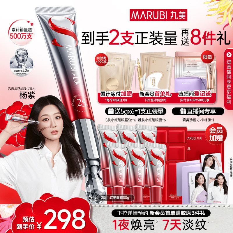 丸美小红笔眼霜S肽淡化黑眼圈细纹提拉紧致熬夜焕亮眼周带按摩头