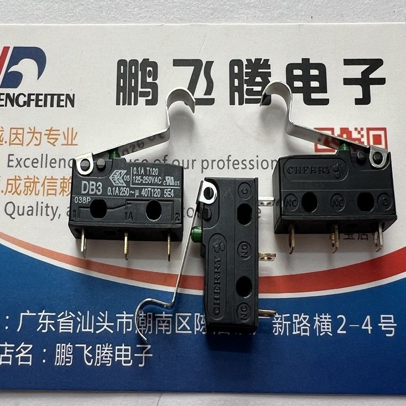 进口德国CHERRY樱桃DB3微动开关 3脚带柄R柄 行程限位0.1A 金触点