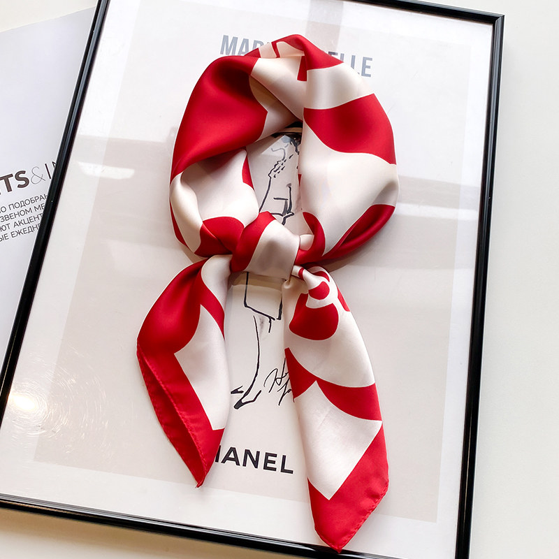 红色山茶花丝巾女春秋夏季70cm小方巾领巾高级感头巾妈妈围巾披肩