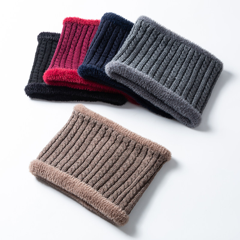 秋冬季户外保暖毛线围脖男女加绒加厚防风脖套中老年爸爸妈妈围巾