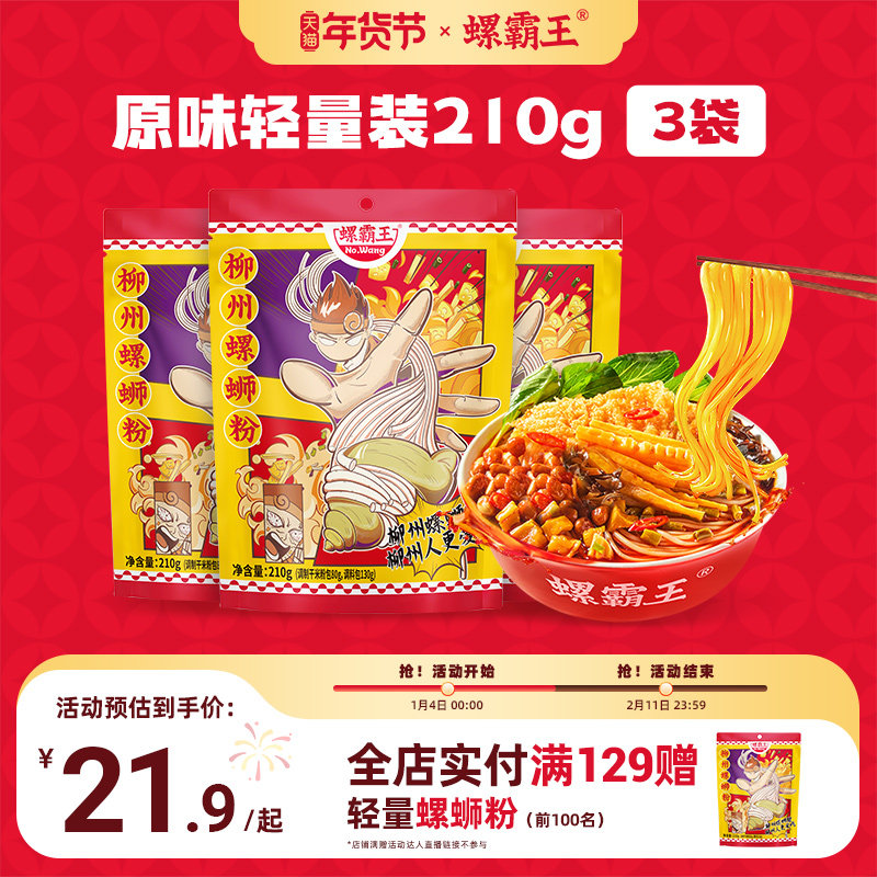 [宵夜轻量装]螺霸王柳州正宗原味螺蛳粉210g*3袋速食米线酸辣米线
