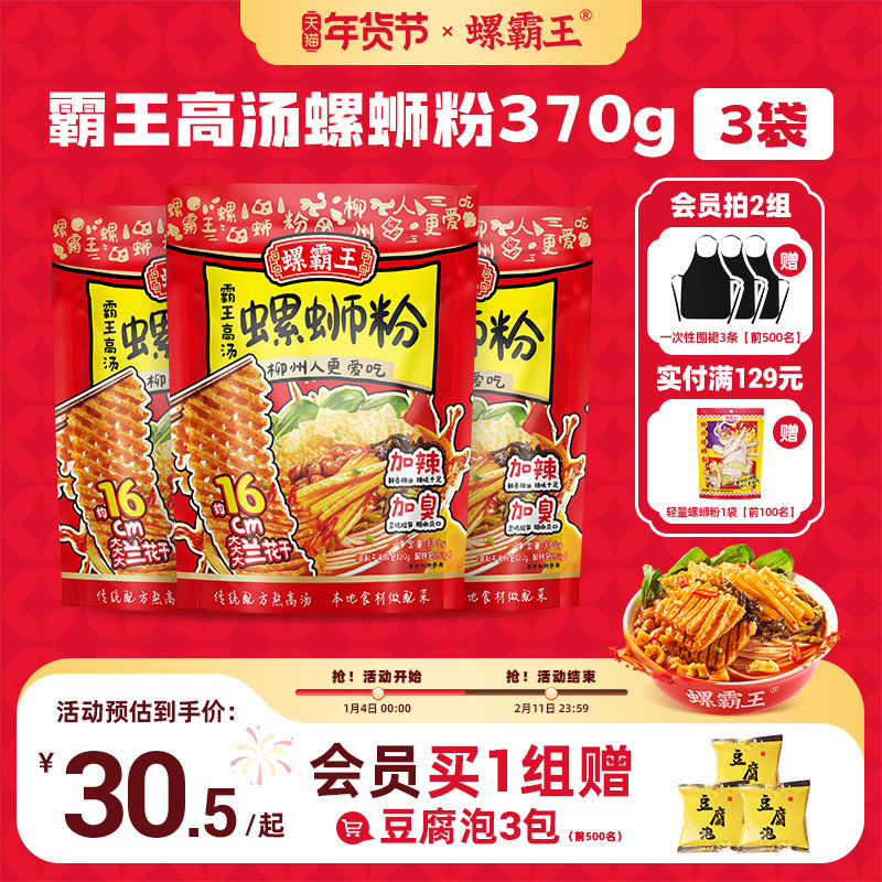 螺霸王高汤螺蛳粉370g广西螺狮粉兰花干夜宵螺丝加辣加臭方便米线