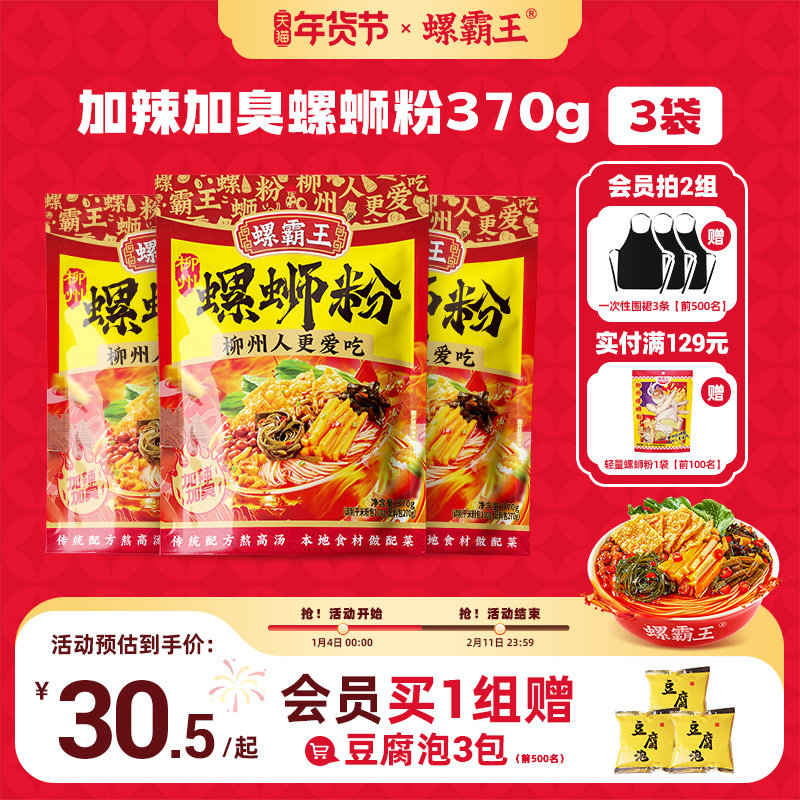 【加辣加臭加量】螺霸王螺丝螺蛳粉加辣加臭370g*3袋柳州正宗速食