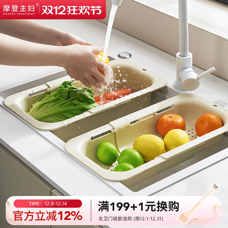 摩登主妇可伸缩沥水篮厨房置物架洗菜盆果蔬滤水洗碗碟水槽沥水架