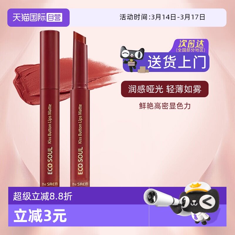 韩国TheSAEM得鲜爱可按钮唇膏按压口红哑光雾面m060805持久不脱色