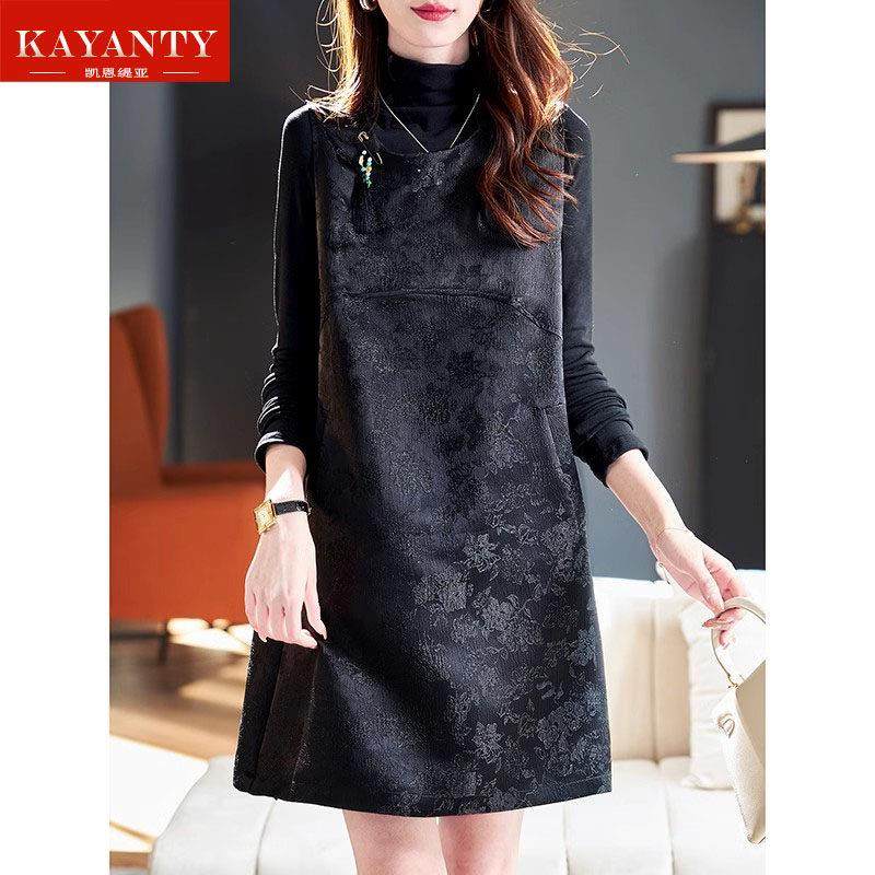 KAYANTY新中式圆领提花背心裙秋冬季气质百搭高级感无袖连衣裙女