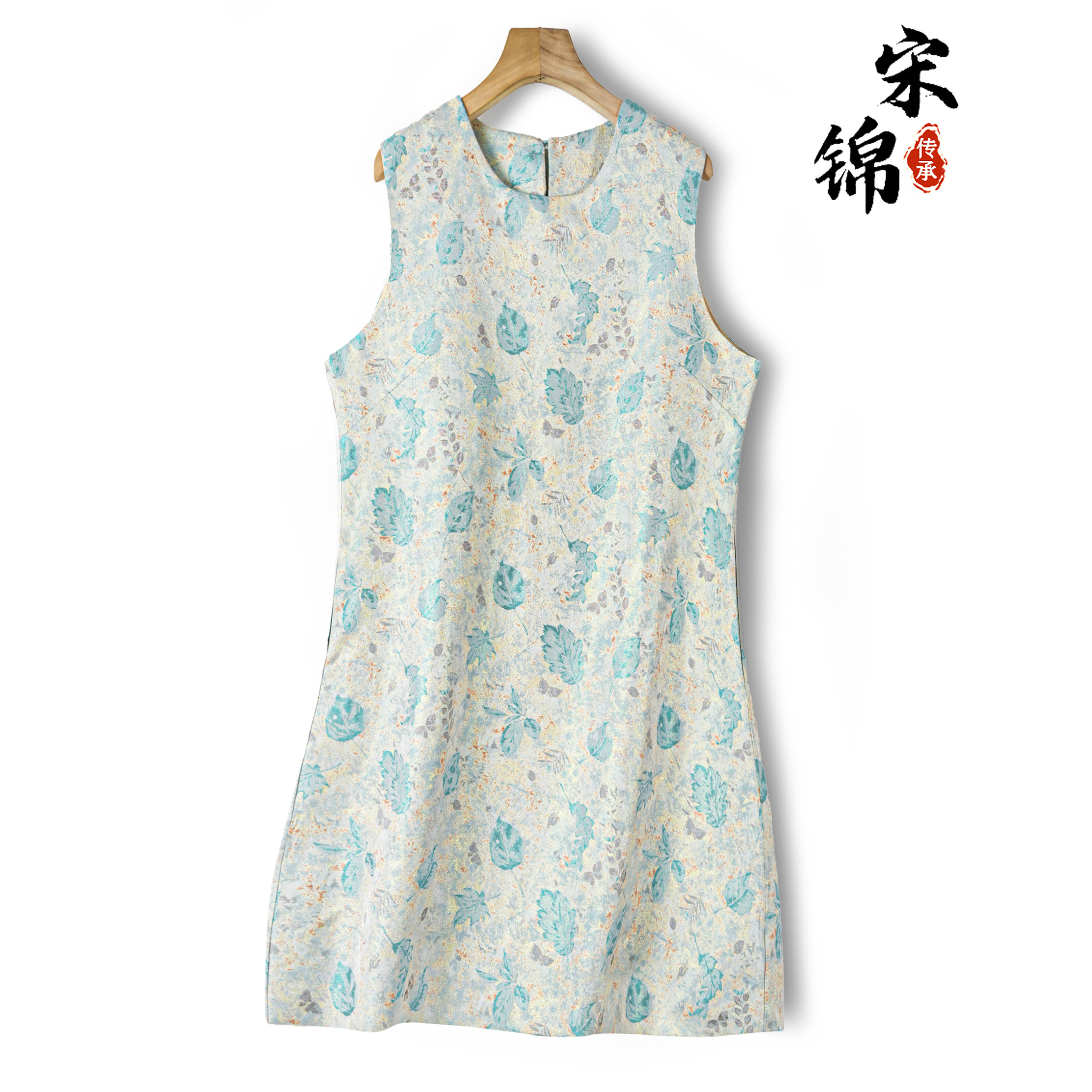 丹霞疏影纹桑蚕丝宋锦背心裙秋冬新款百搭气质小众舒适小A裙叠穿
