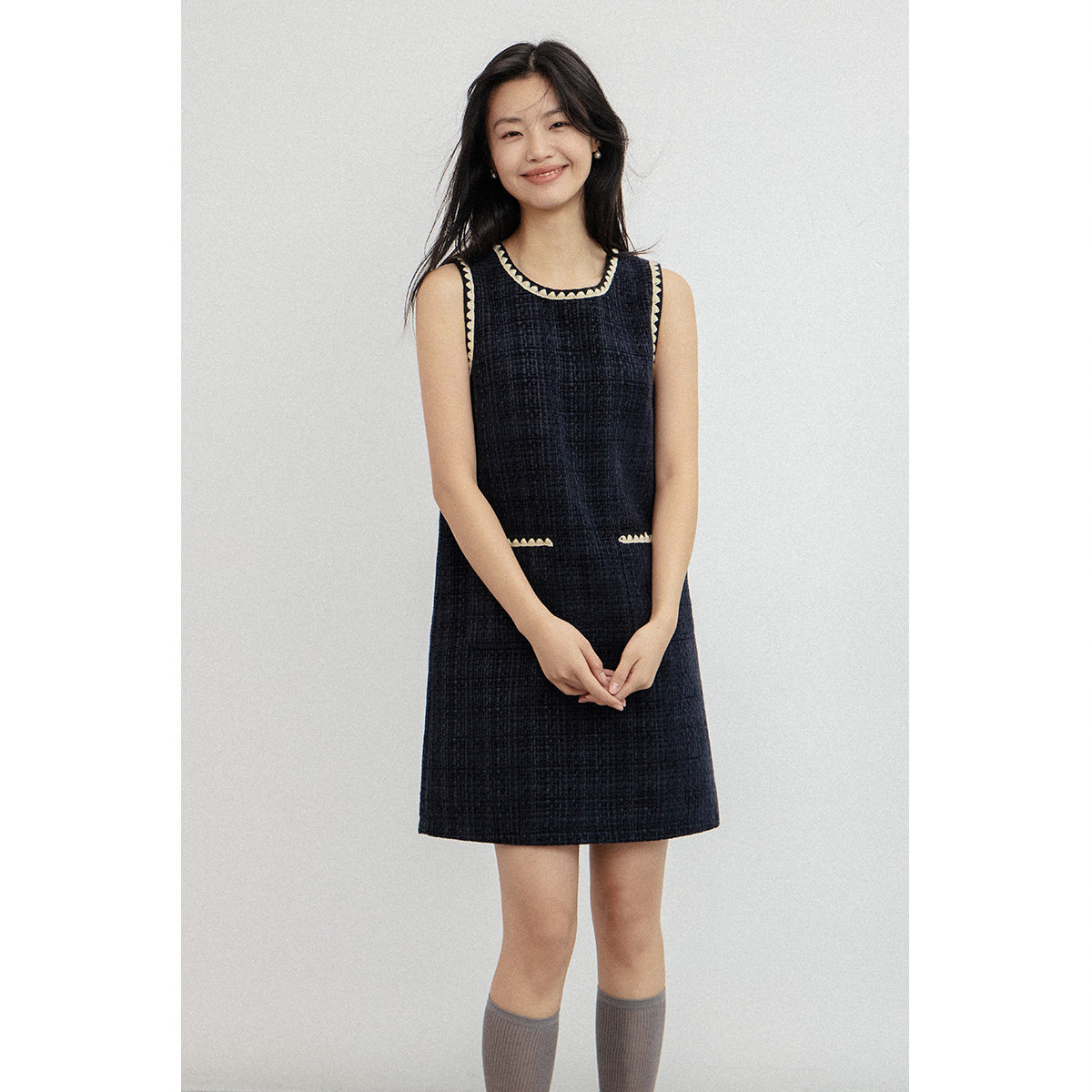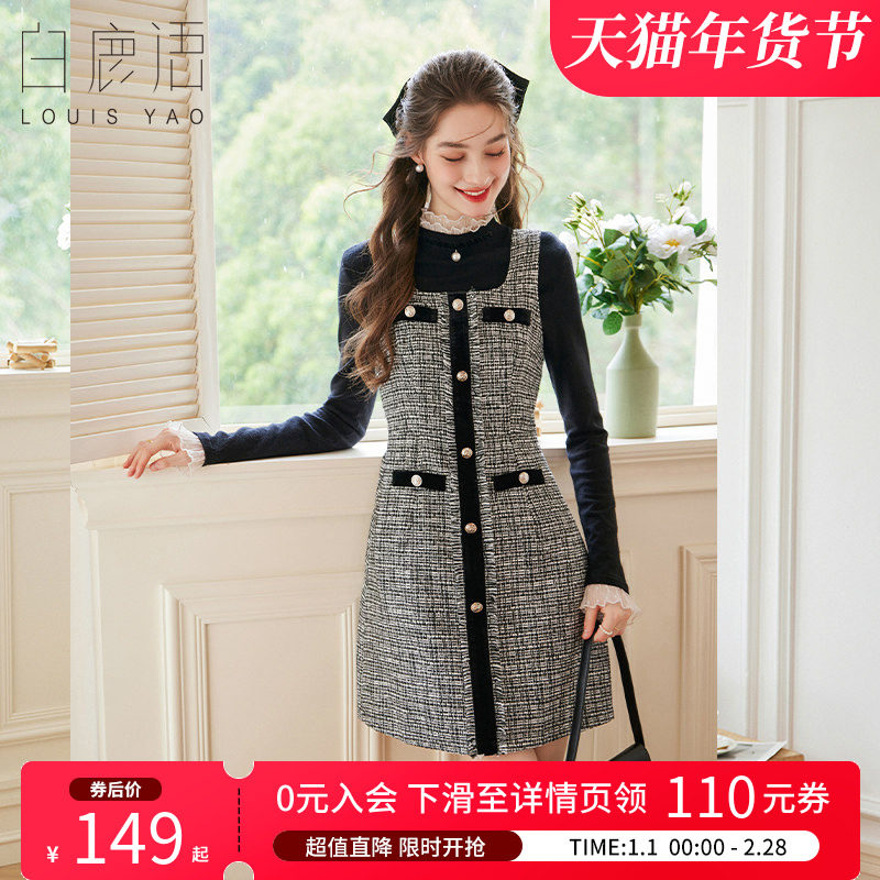 乐町小香风背心裙秋冬季新款小个子女黑白撞色无袖裙老钱风A字裙