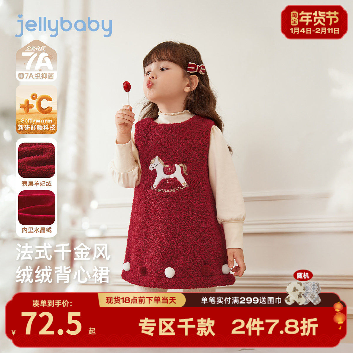 [软糯加绒]女童背心裙秋冬小童连衣裙儿童冬季红色周岁衣服女宝