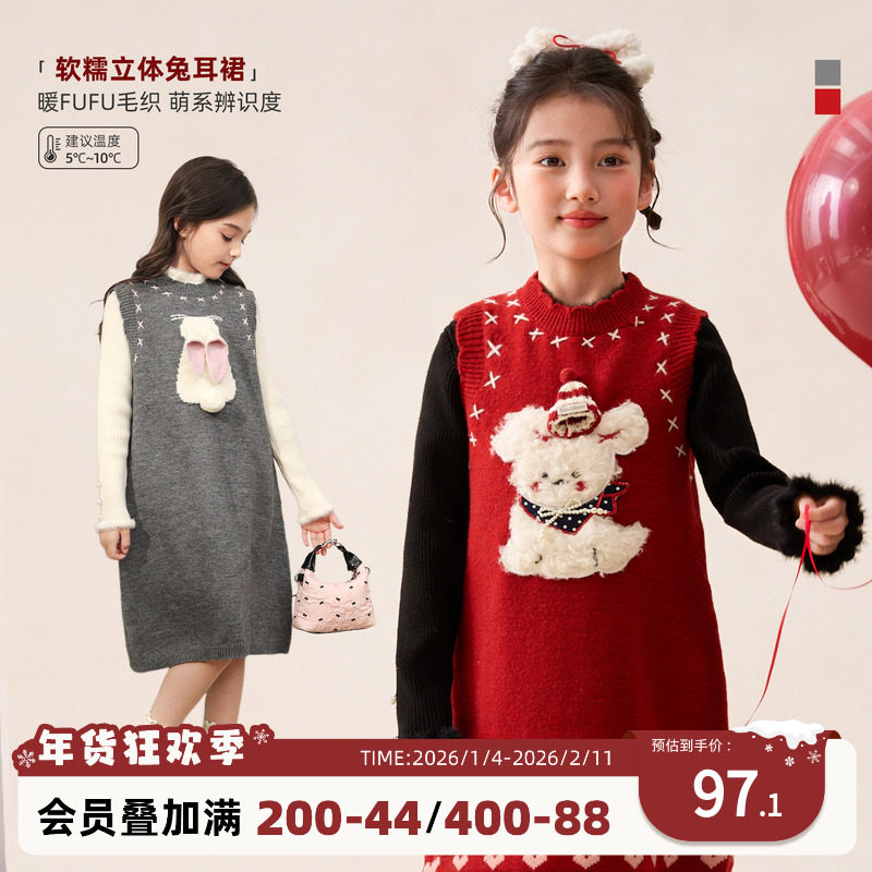 NORNOR陈大猪童装女童毛织背心裙秋冬新款可爱兔子裙子儿童连衣裙