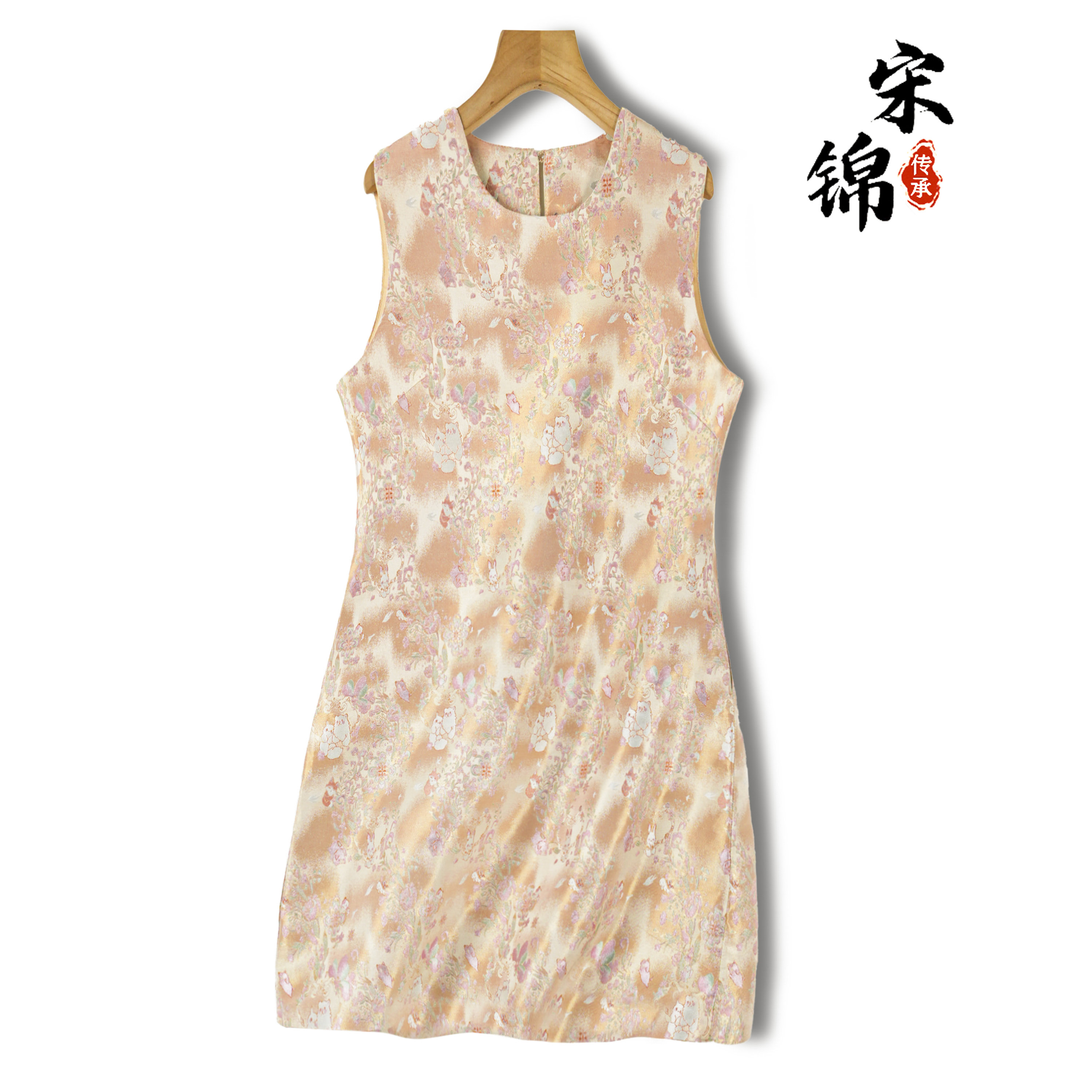 春日暖阳纹桑蚕丝宋锦背心裙秋冬新款百搭气质小众舒适小A裙叠穿