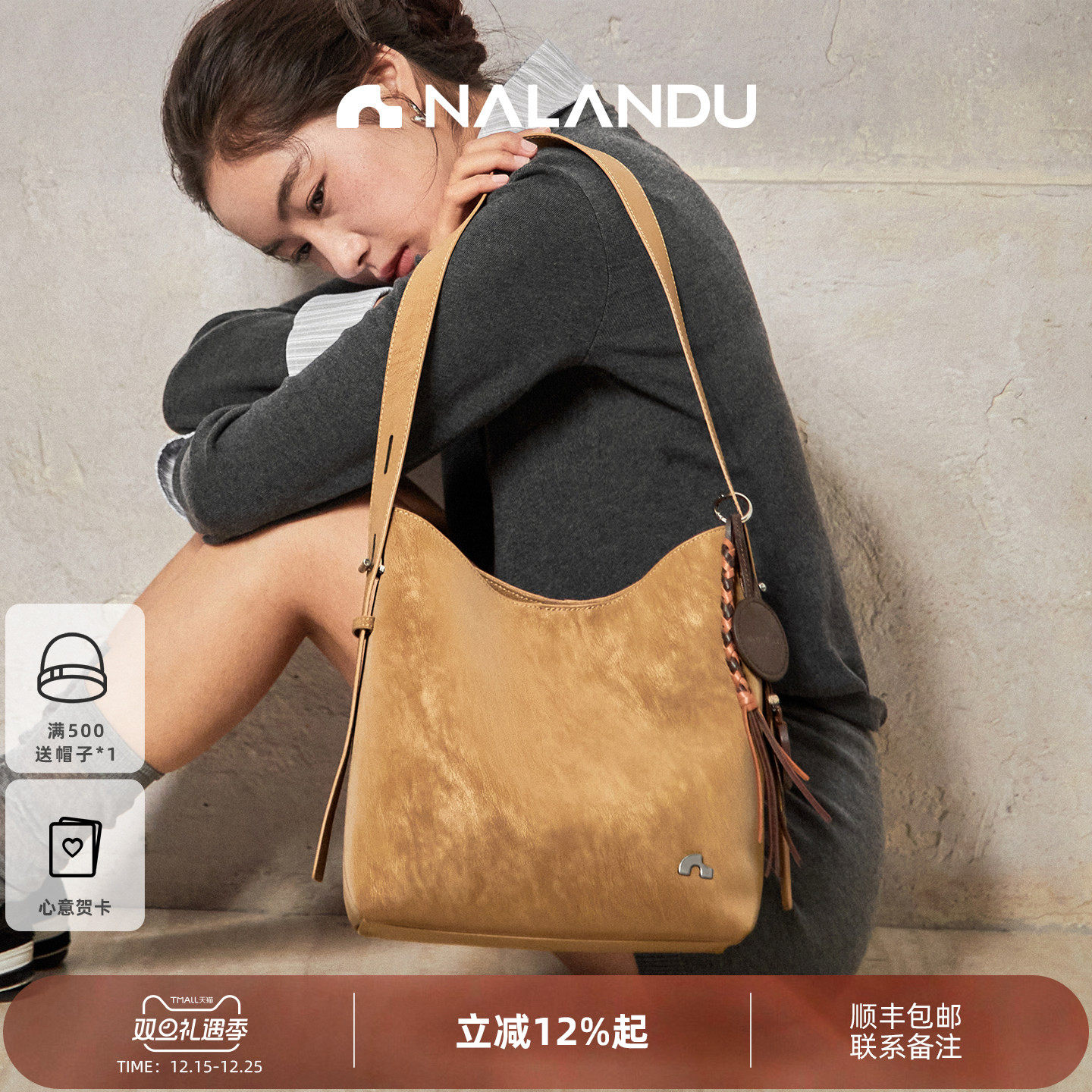 纳兰杜晚霞包麂皮包包女士2025新款冬植鞣水桶包大容量通勤斜挎包