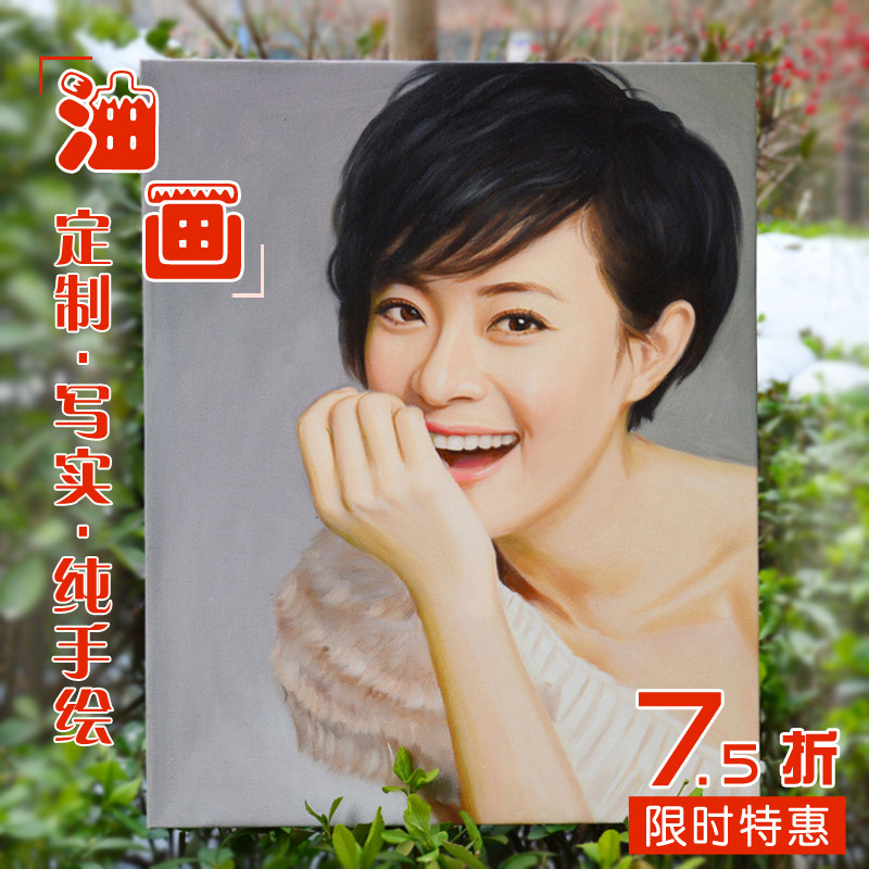 纯手绘肖像油画统定制 写婚实人物生活纱订照转1200油画 传手工制