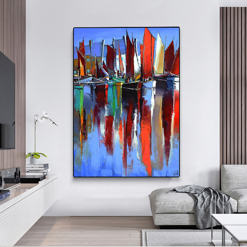 纯手绘客厅装饰画大幅刀画抽象风景油画手工竖画一帆风顺玄关挂画