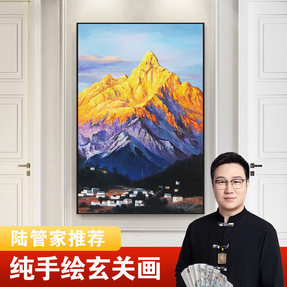 纯手工手绘油画客厅沙发背景墙装饰画日照金山挂画美式轻奢大芬村