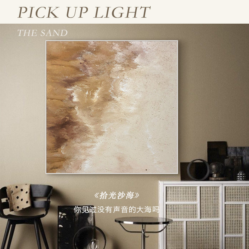HW.ART手绘油画《浅语》侘寂风玄关肌理挂画客厅纯手工抽象装饰画