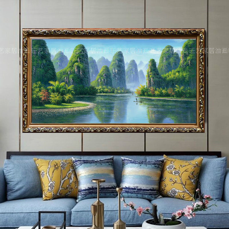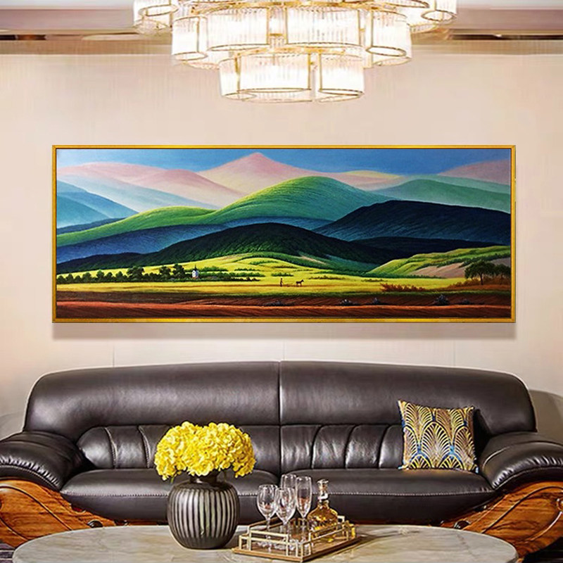 金山纯手绘油画轻奢入户玄关餐厅客厅风景西墙装饰画手工壁画挂画