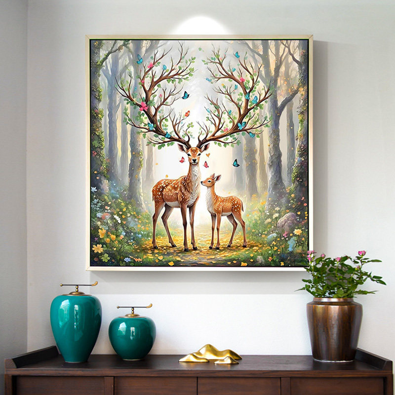 新中式柿柿如意diy数字油画 客厅卧室装饰画手绘壁画纯手工丙烯画