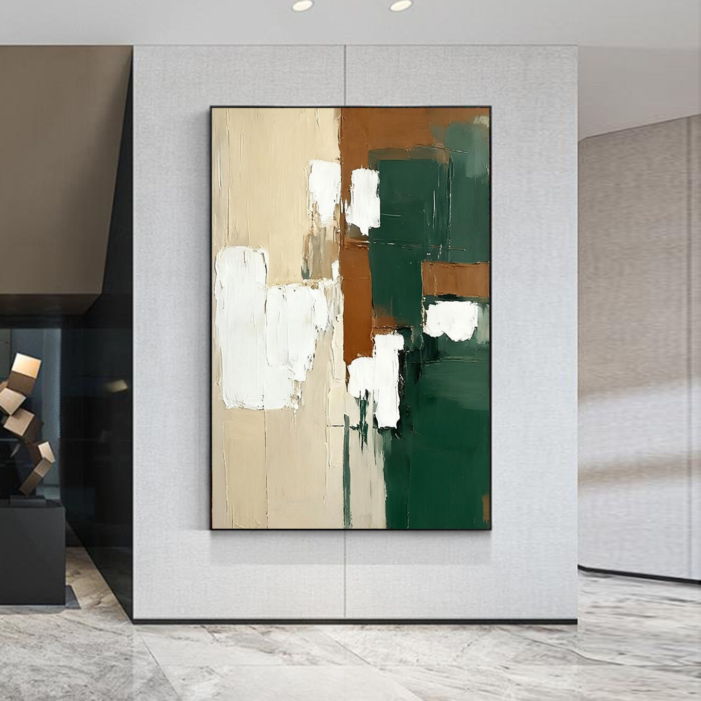 HW.ART纯手绘油画《绿野幻梦》侘寂风客厅装饰挂画玄关艺术手工画