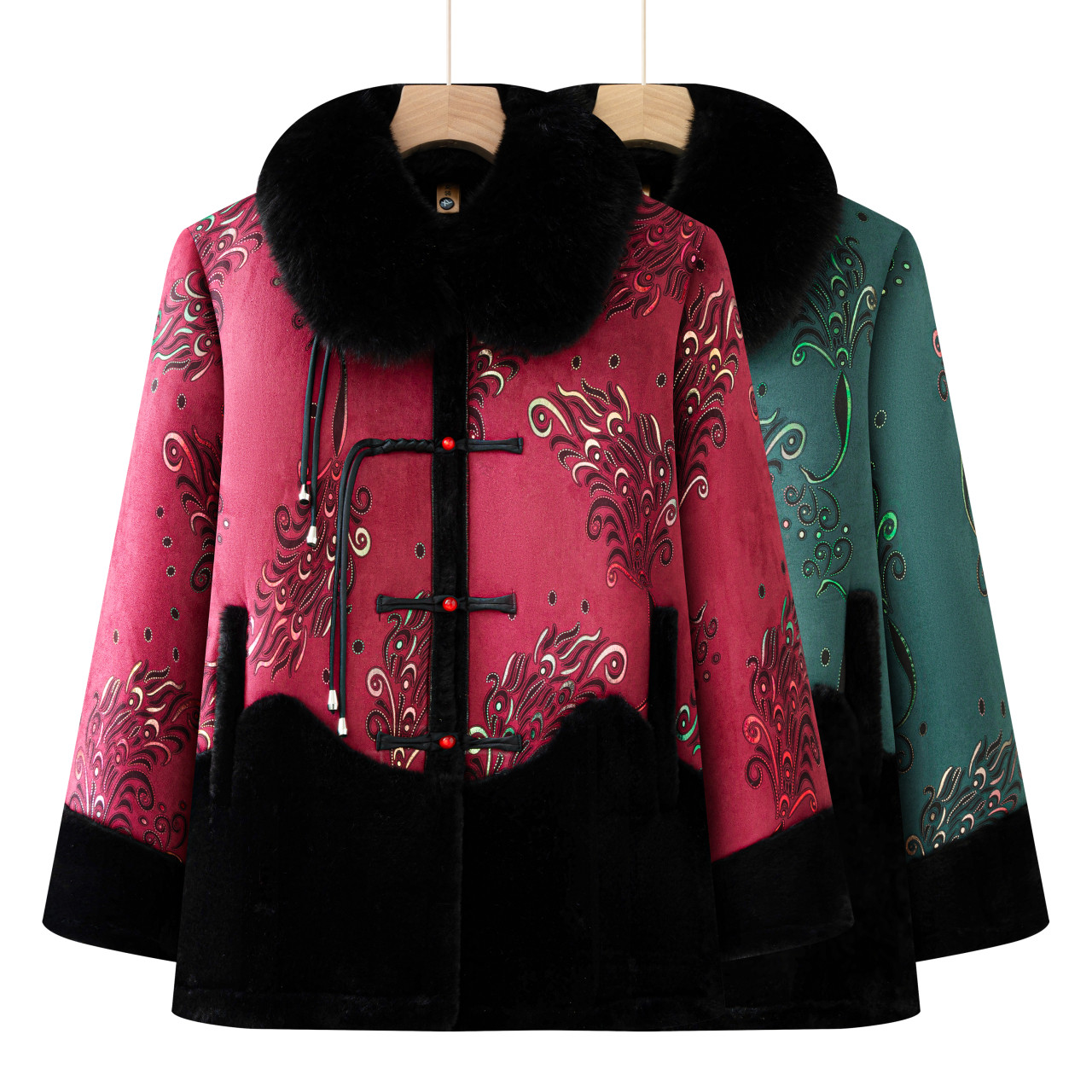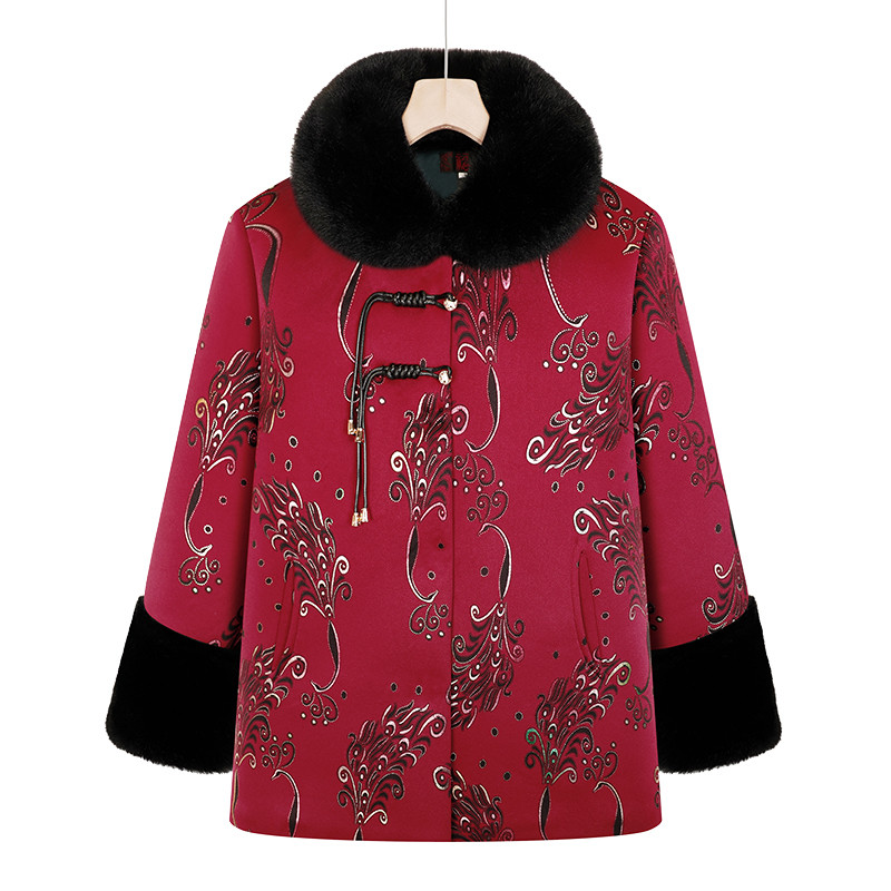 中老年女装妈妈春装新中式水貂毛外套奶奶装冬装加绒保暖过年唐装
