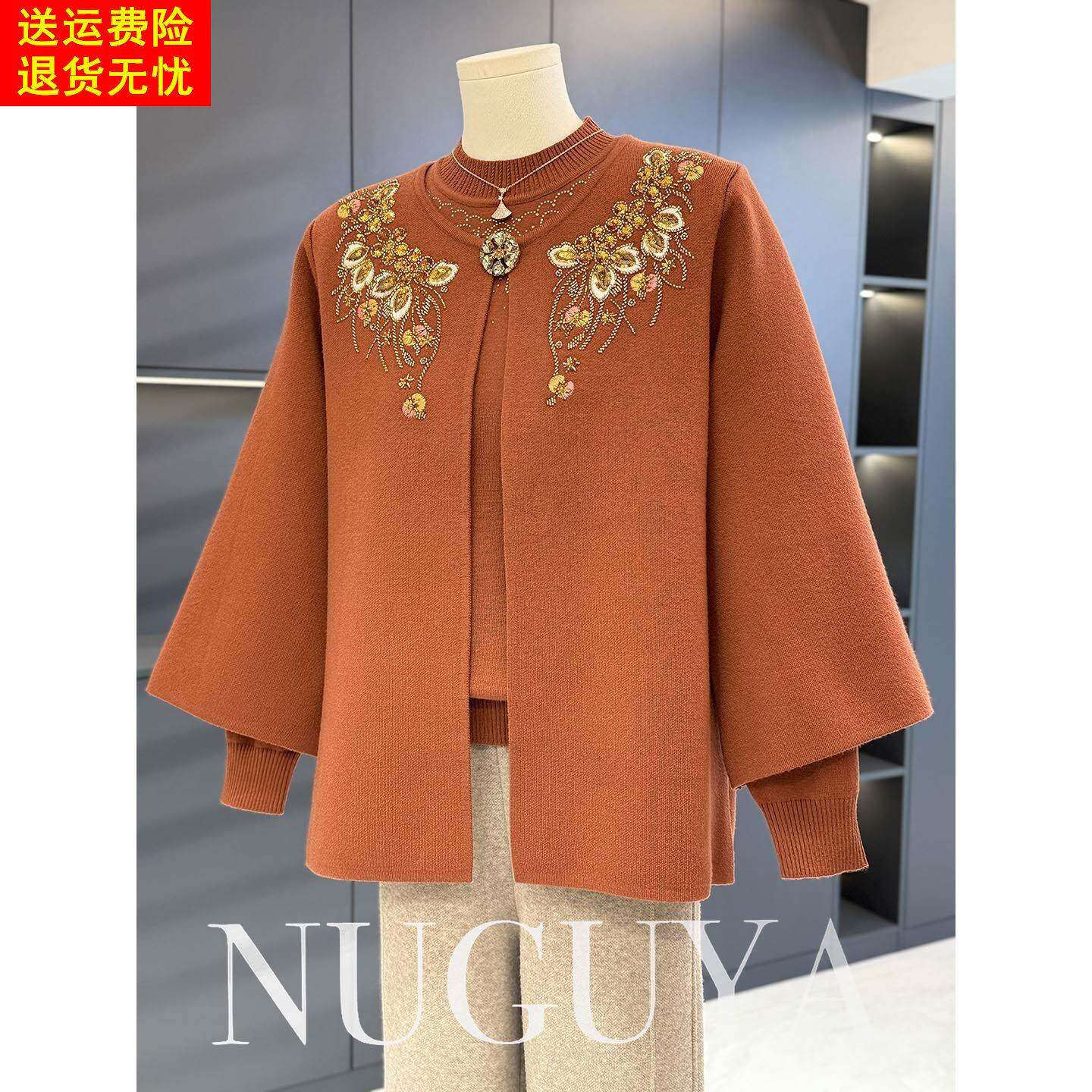 中老年针织衫女两件套奶奶装冬装新款时尚婆婆装大码妈妈毛衣套装