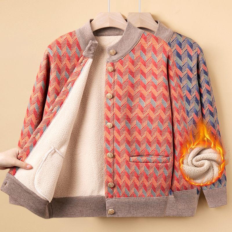中老年人加绒厚衣服妈妈秋冬喜庆开衫奶奶装冬装加绒大码毛衣外套