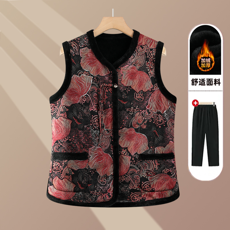 老人马甲女奶奶装冬装加绒加厚背心中式妈妈装新款老人秋冬装坎肩