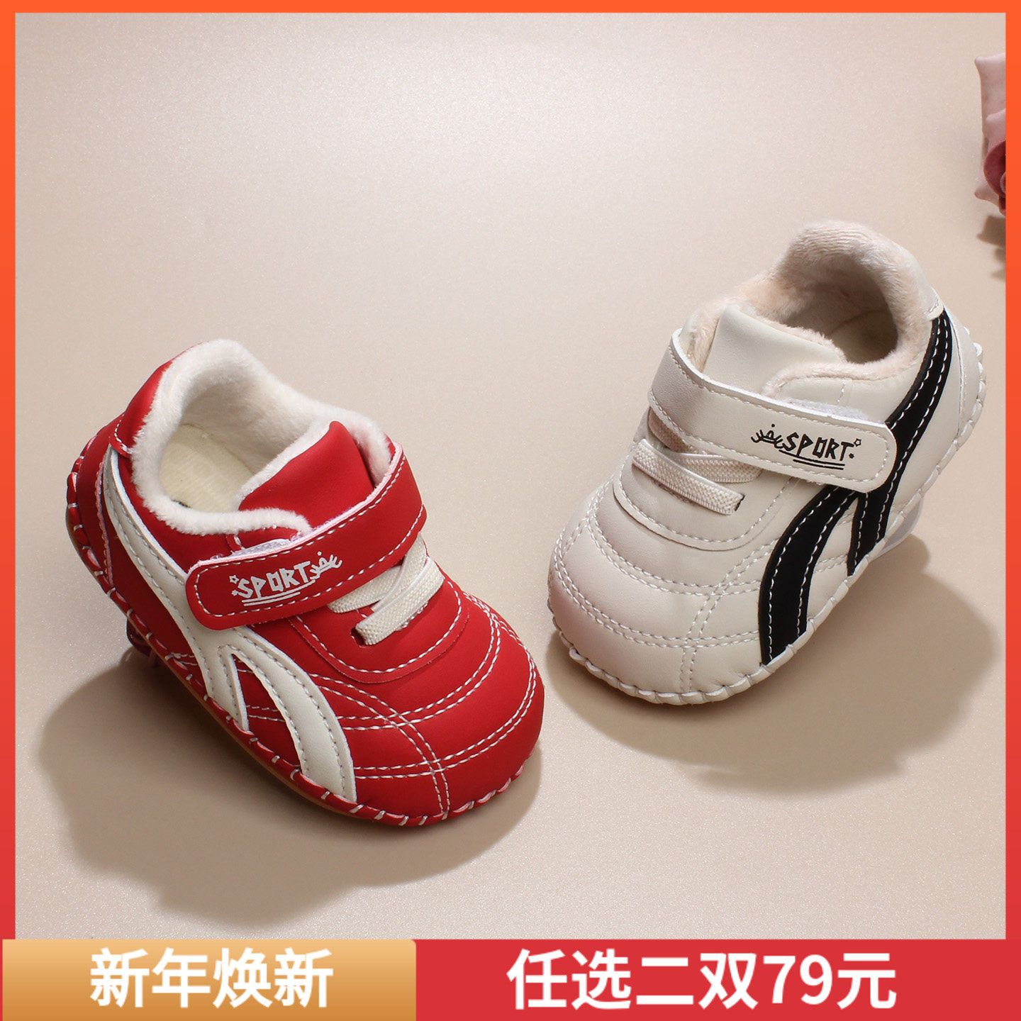 学步鞋男宝宝鞋子秋冬款加绒宝宝棉鞋软底1一3岁婴儿鞋机能女童鞋