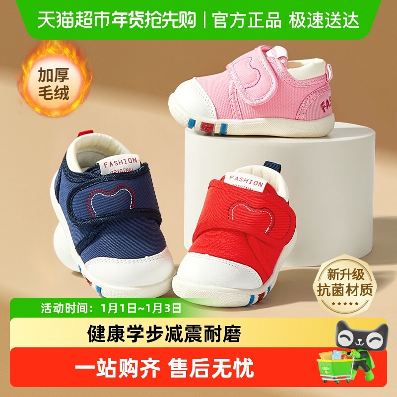 学步鞋男宝宝鞋子秋冬季婴儿学步鞋软底加绒机能鞋1一2-3岁男童鞋