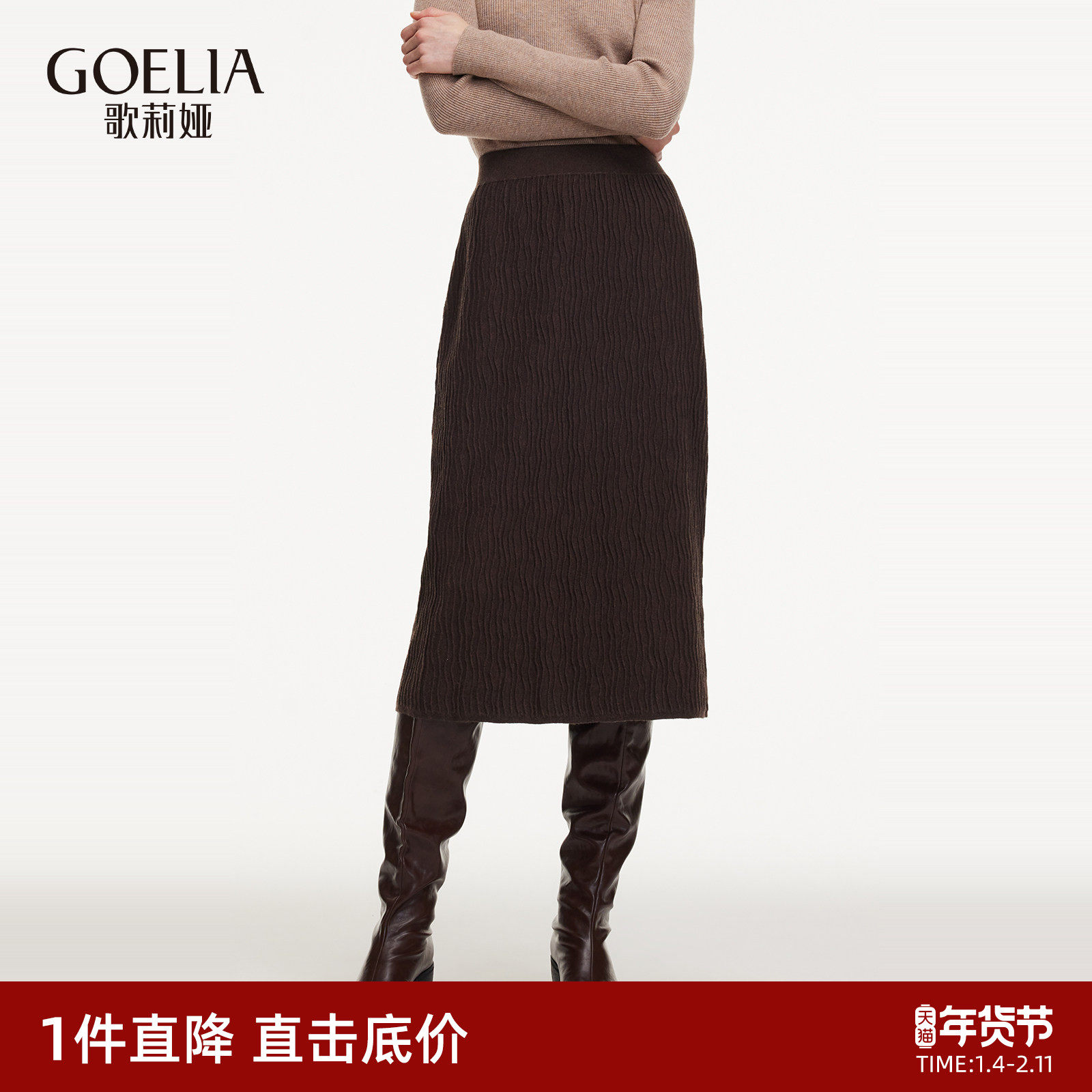 首降3折|歌莉娅针织半身裙女2025新款秋季穿搭小众高腰直筒裙子