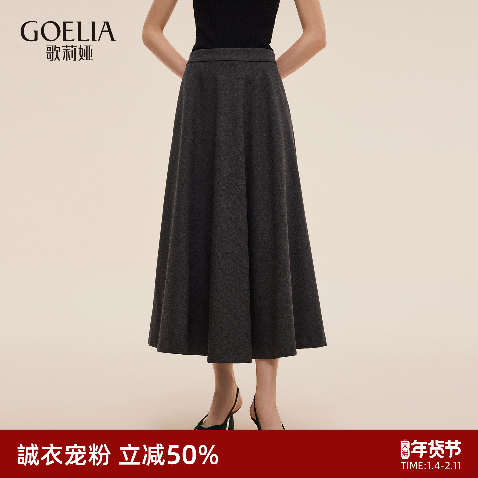 首降5折|歌莉娅羊毛半身裙女2025新款秋季流行穿搭高腰长裙A字裙